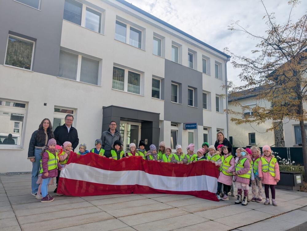 Anlässlich des Nationalfeiertages machten wir uns auf den Weg zum Gemeindeamt. Dort wurden feierlich die Fahnen gehisst – ein besonderer Moment, bei dem die Kinder mit großem Interesse dabei waren. Im Anschluss gaben die Kinder mit ihrem Fingerabdruck ein ganz besonderes Versprechen ab: Wir wollen ehrlich, friedlich, höflich und achtsam miteinander umgehen.